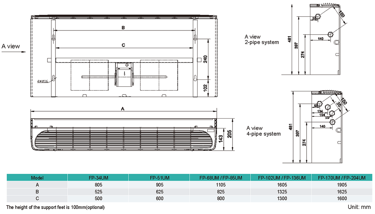 Coil are made of copper tubes and high exchange surface area aluminum blue fins. All coils are 100% tested against leaks by 16bar,1.6Mpa air pressure. with 3/4”pipe connections and air bleed vent.